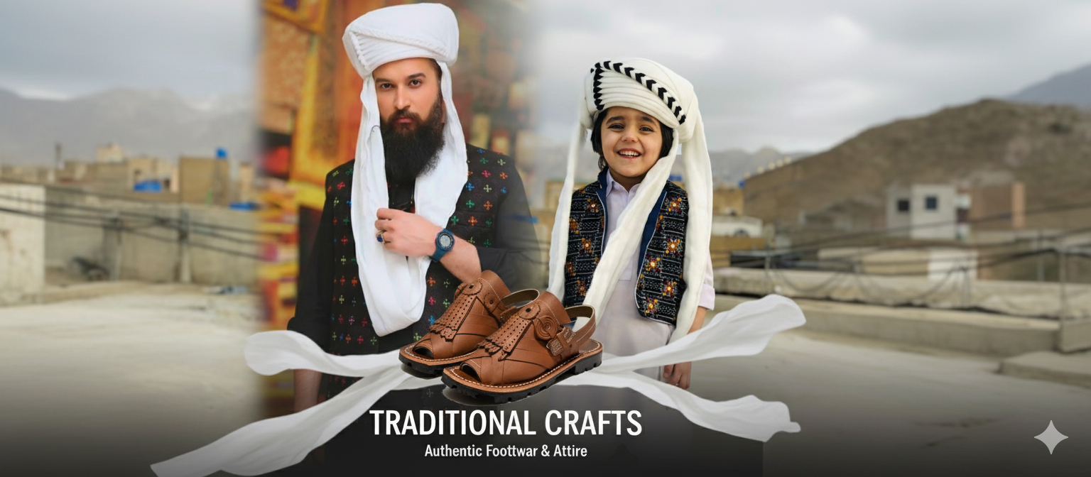 Handmade Balochi Leather Chawat – Marri Tribal Design (Men’s Traditional Wear)